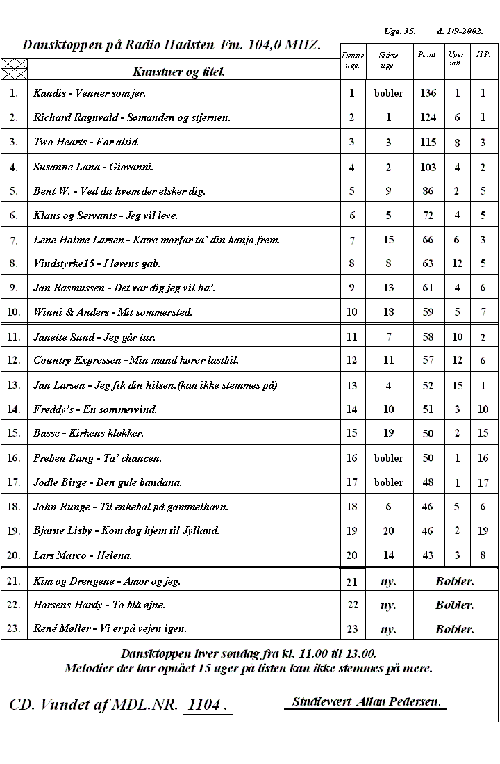 Hitkassen Radio Herkules (Kolding) Uge 36